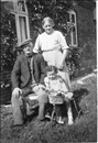 Anna-Marie Lauenborg med bedsteforældrene Anna og Kristian Søndergaard. Taget i haven på "Hedelund", der lå på Vestervigvej.